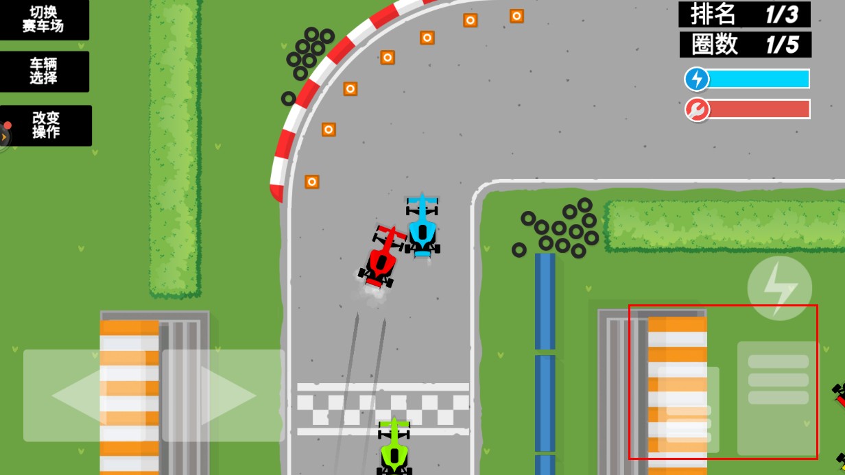4、通过左侧带有方向标识的按键,控制赛车的转向,灵活调整行驶方向,在赛道上顺利前行。