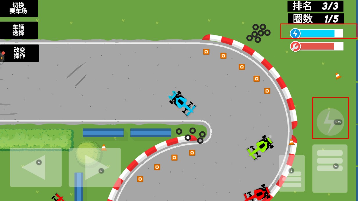 3、当看到闪电图标且处于可使用状态时,点击它能触发车辆的加速效果,助力比赛中取得优势。