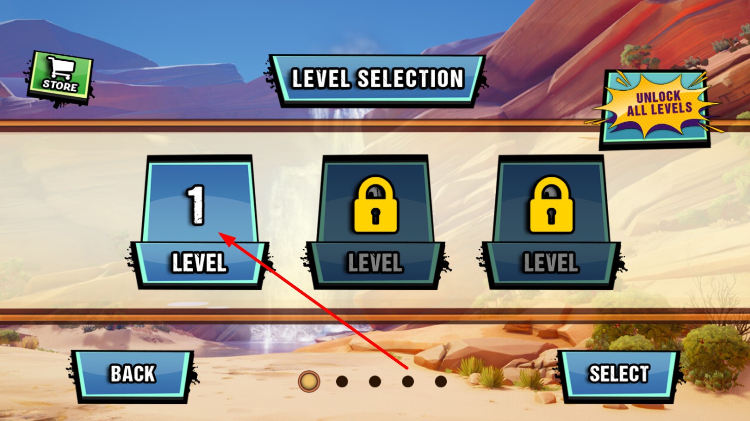 2、在关卡选择界面,点击标注“1”的关卡,即可进入该关卡挑战。