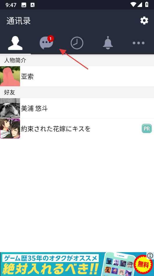 2、进入游戏后,在通讯录界面,点击带有红点的聊天图标,查看未读消息。