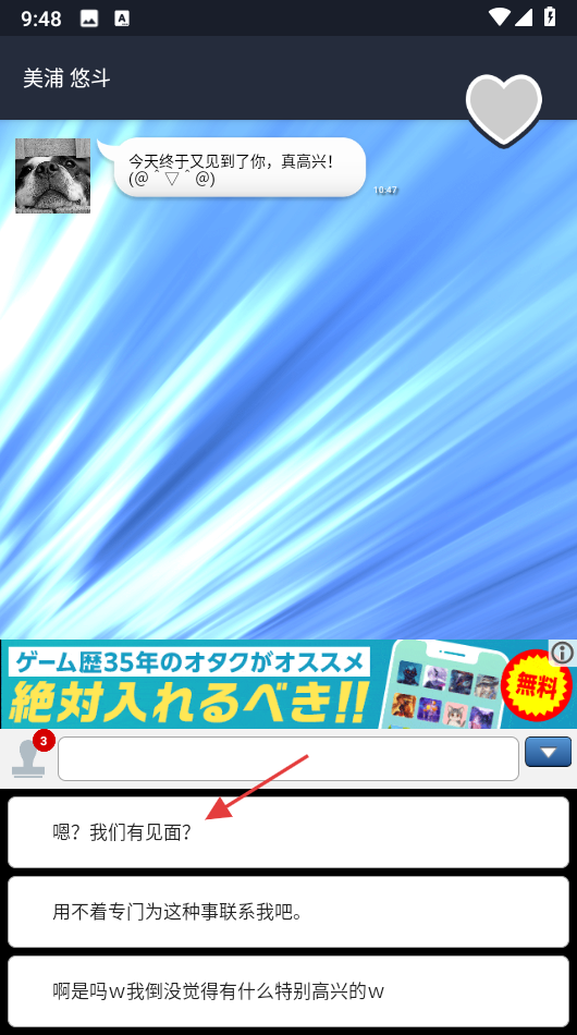 3、在聊天界面,选择合适的对话选项(如“嗯?我们有见面?”)进行回复,推进恋爱剧情发展。