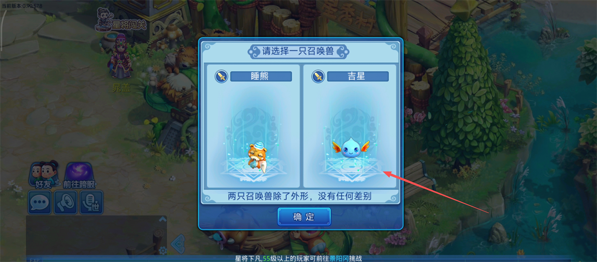 3、面对【睡熊】和【吉星】两只召唤兽,任选其一,点击确定即可收入囊中哟。