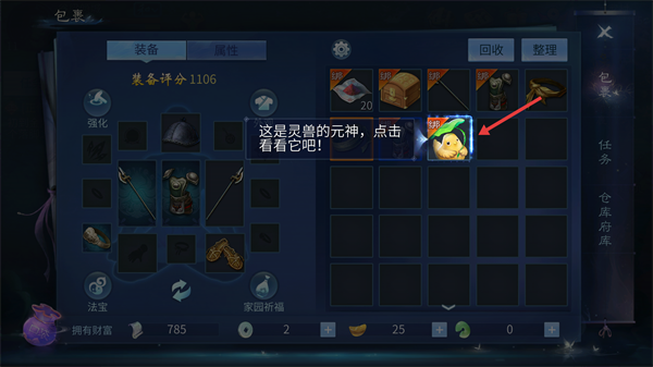 3、点击【召唤灵兽】按钮,召唤灵兽。