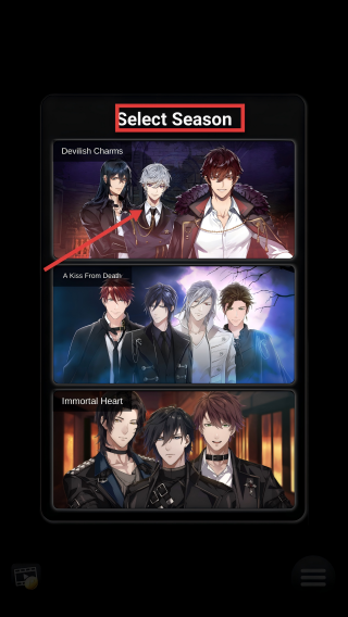 1、进入【Select-Season】界面,选择【Devilish-Charms】季节,开启对应角色的故事篇章。