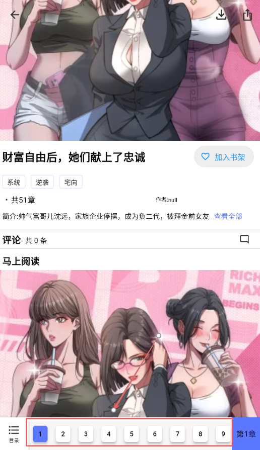 2、成功导入漫画后,可以自由阅读,还能把特别喜欢的加入到个人书架里保存,方便下次继续观看不会丢失进度。