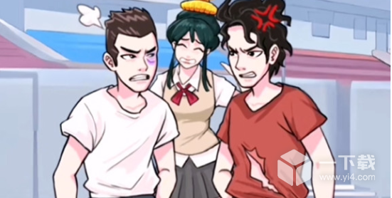 4、点击右男,拖动右男手里的鸡蛋到左男脸上。
