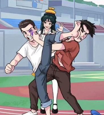 1、汉字找茬王新生合影,需要帮他们完成合影,首先下滑右男的手。