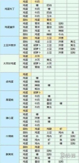 鸡蛋布丁、鸡蛋灌饼、土豆洋葱饼、木耳炒鸡蛋、卤鸡蛋、厚蛋烧、溏心蛋、什锦烧、酥黄菜