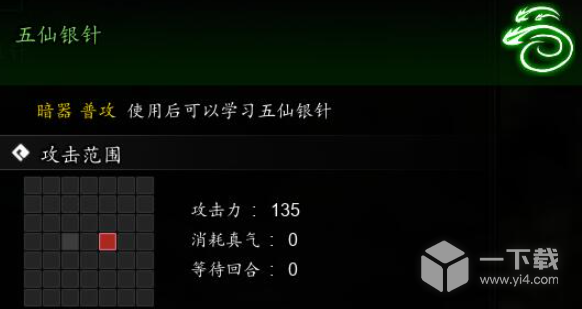 五仙教基础的暗器手法,对自身远距离1格范围造成伤害,使用不消耗真气