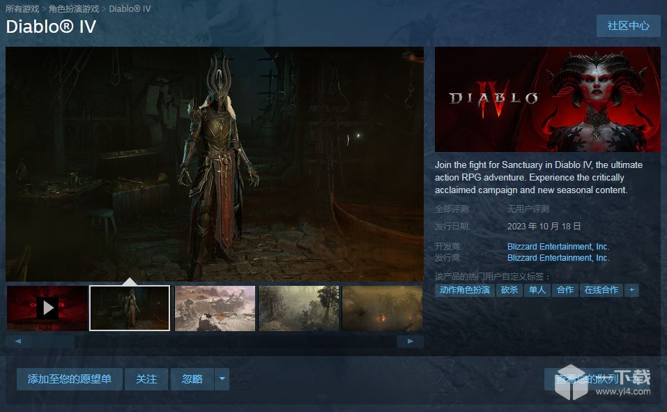 10月18日暗黑破坏神4Steam页面公开上线