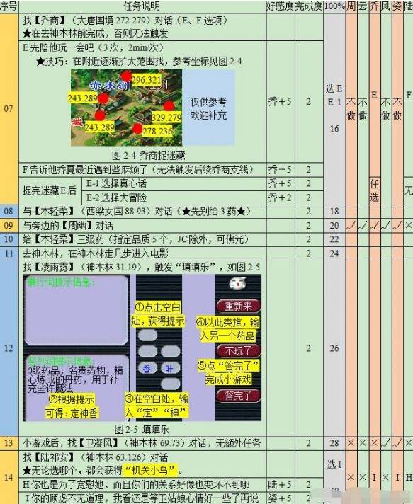 6、给【木轻柔】三级药后去神木林,在神木林(31.19)找【凌雨露】触发“填填乐”;