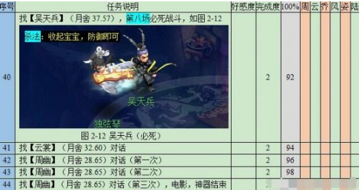14、月舍(35.41)对话【吴天兵】,传送至“情之幻境”(98.3)击败【周幽】;
