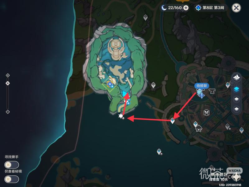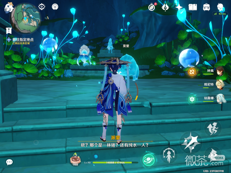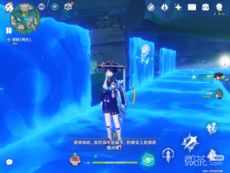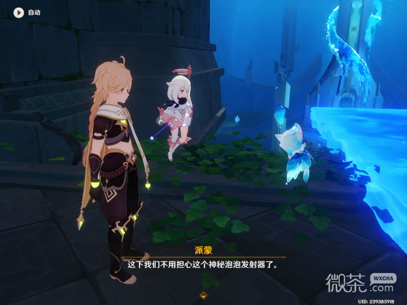 到了这个位置会发现一个遗迹,遗迹里面会有一个纯水精灵会自动会自动进行对话。