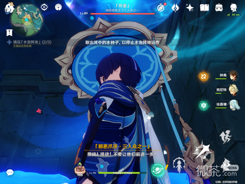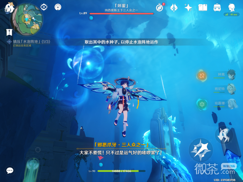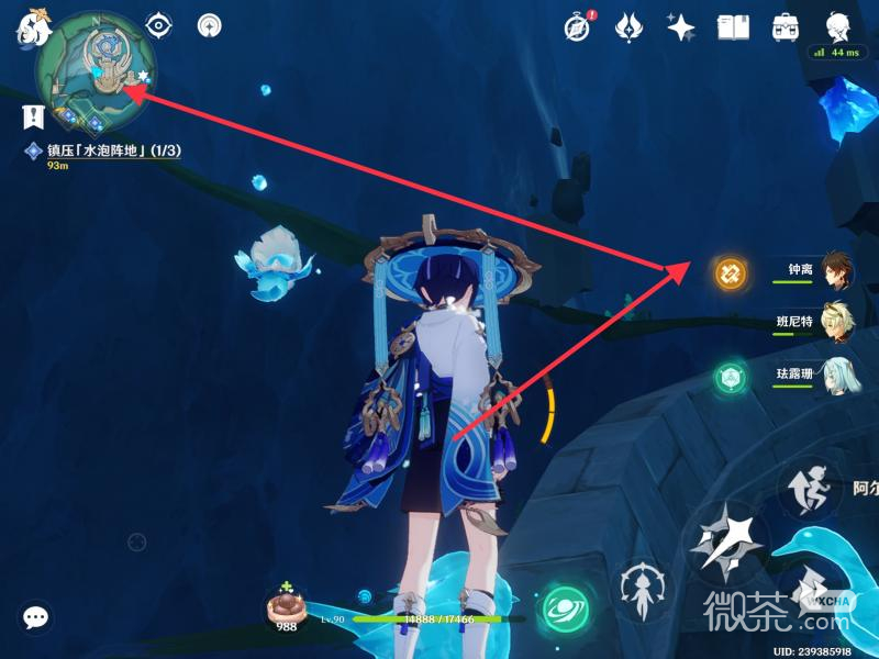走过去后,就会发现下一位纯水幻灵,击败怪物就可以啦。