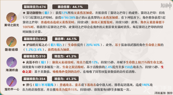 ④西风剑:优化琳妮特的能量循环,装备该武器时可考虑选择暴击头。