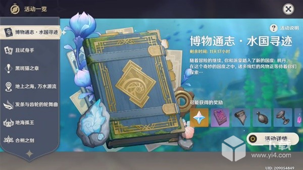 冒险等阶达到20并解锁了任意枫丹区域的七天神像后,可参与「博物通志.水国寻迹」活动。