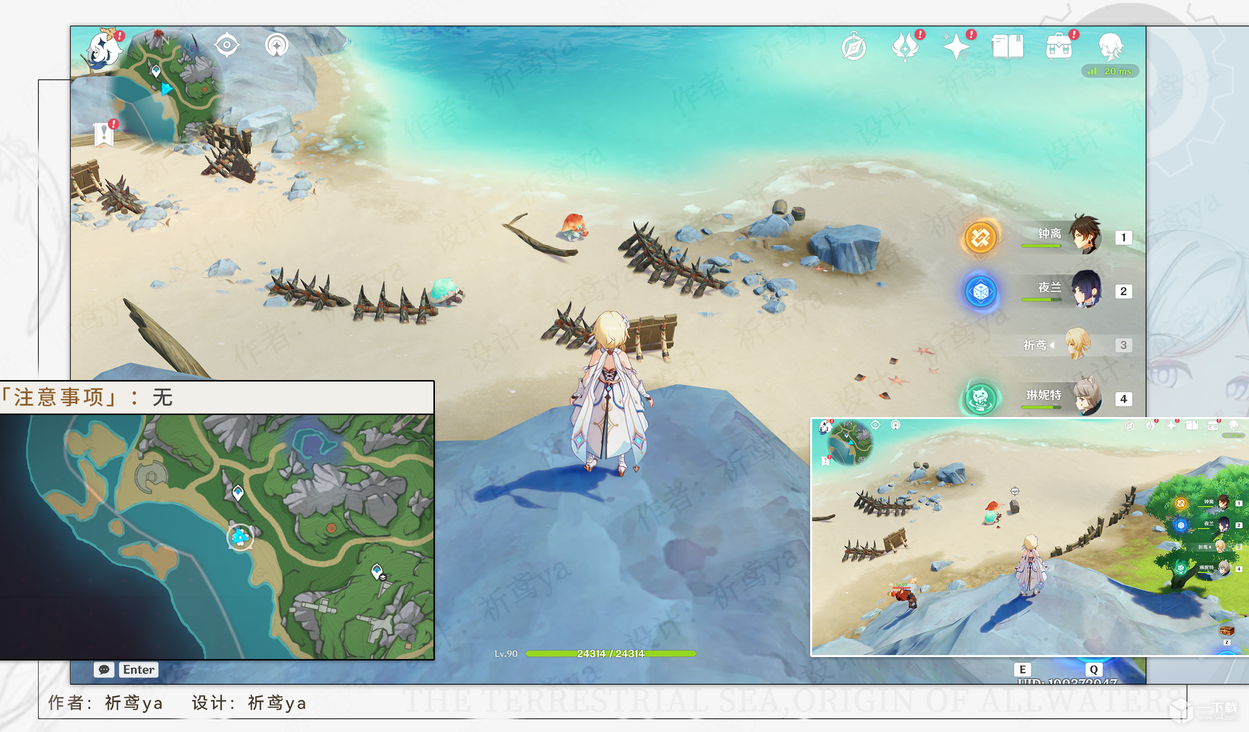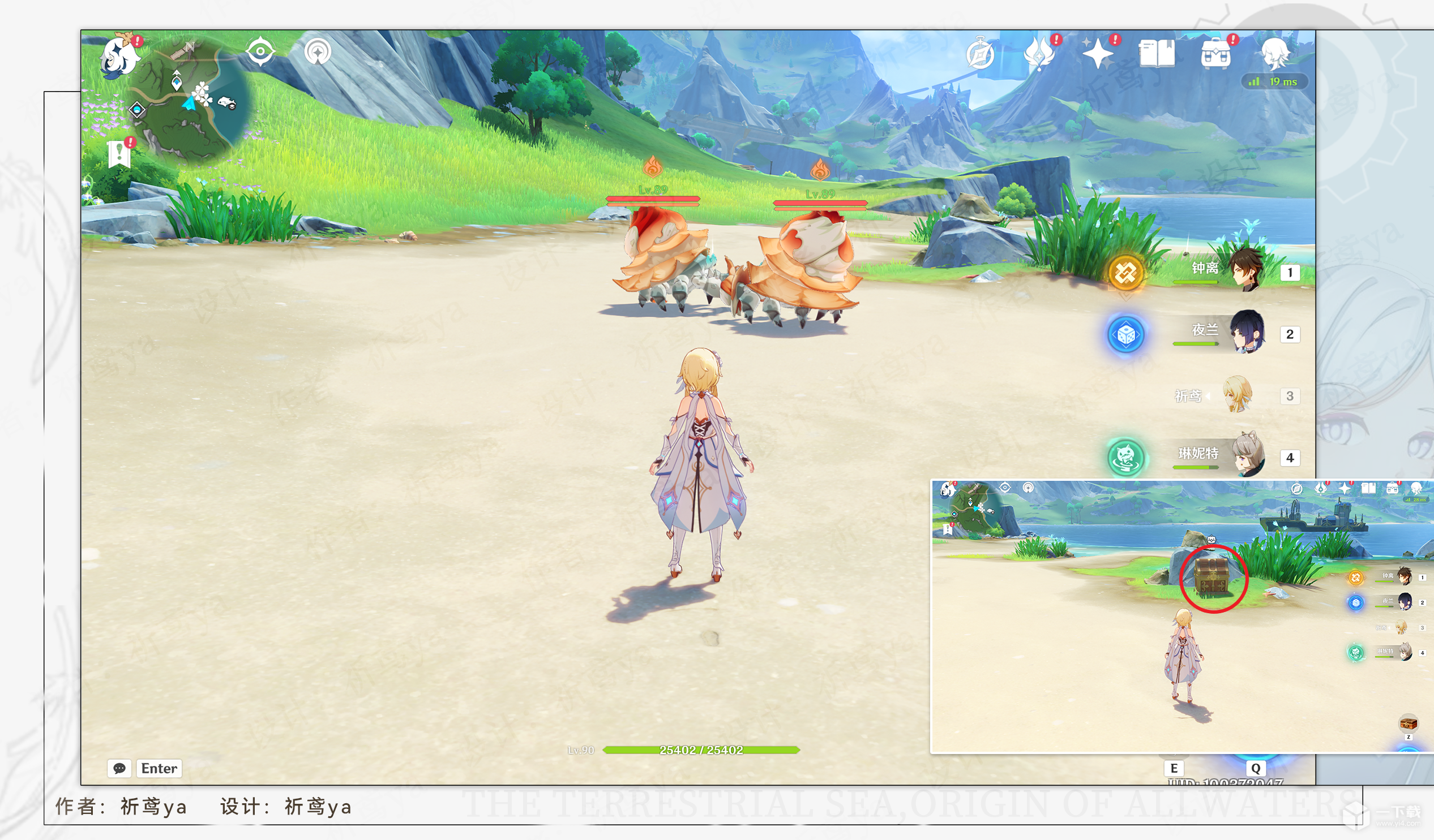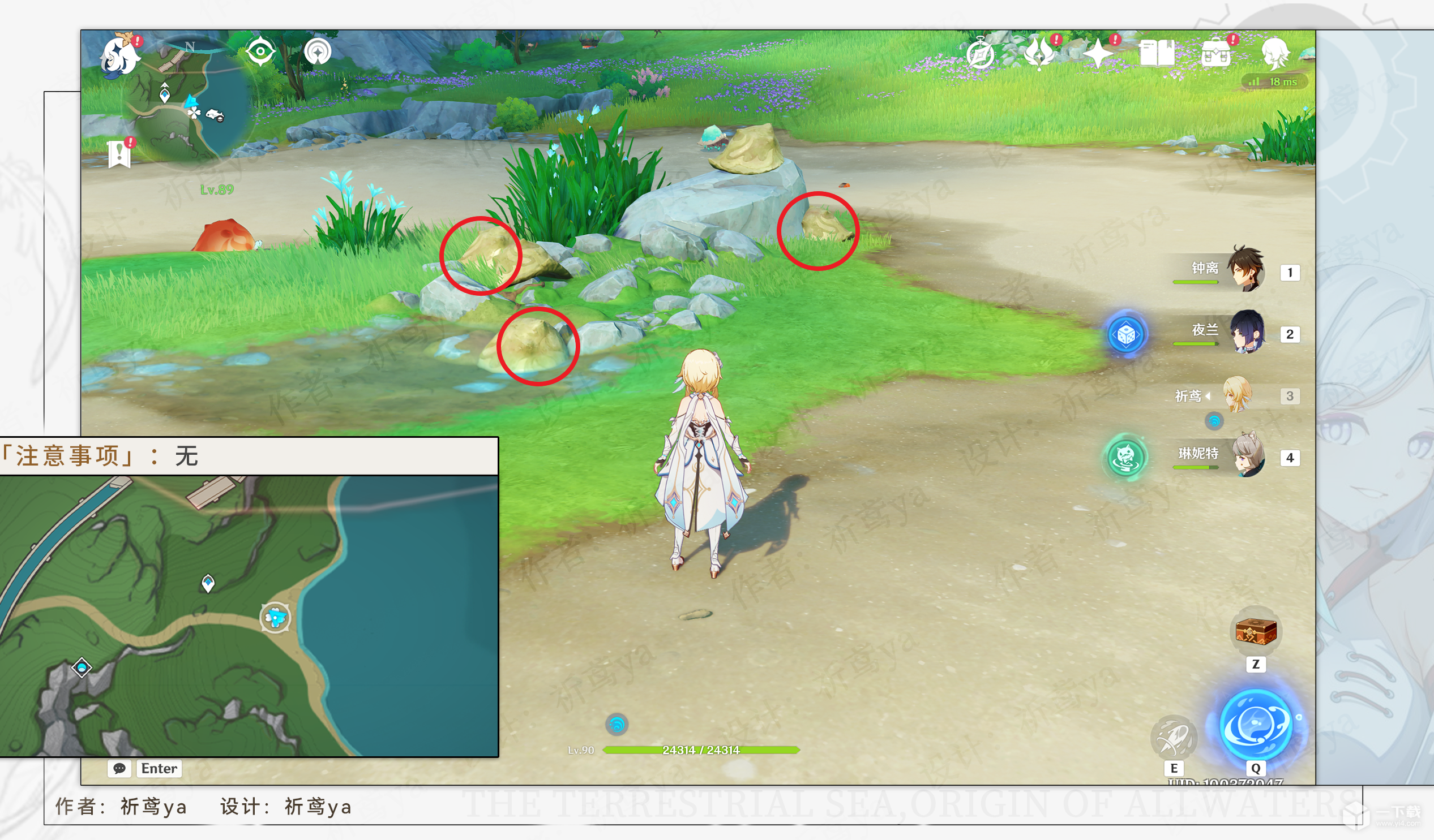 2,来到枫丹廷北边,挖掘这四个螃蟹壳,之后击败这块区域全部的螃蟹(包括原本就有的)
