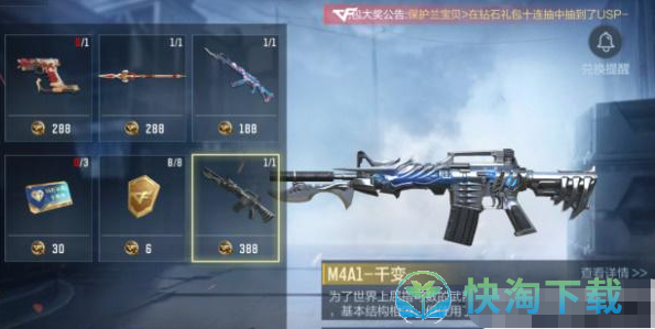 打开嘉年华兑换商城,可以查看全新英雄级M4A1-千变开启兑换,兑换所需嘉年华CFM币为388枚。