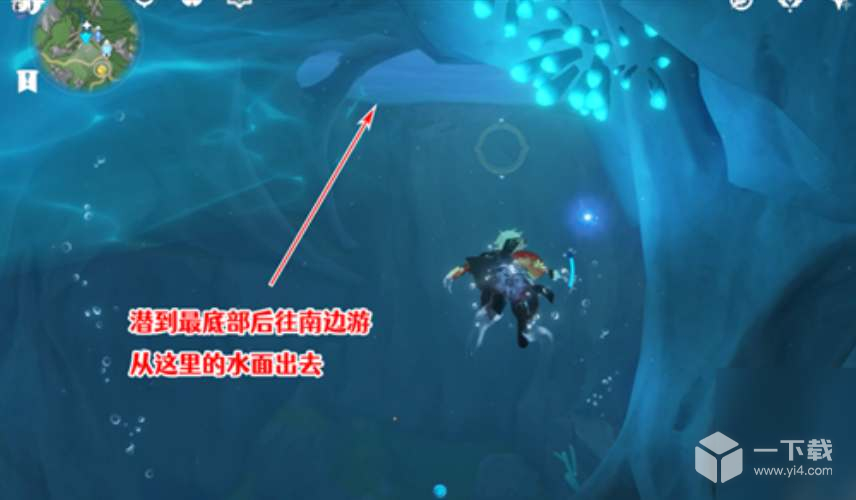 2、从箭头指向的位置上浮出来后就可以进入地下世界的山洞里了;