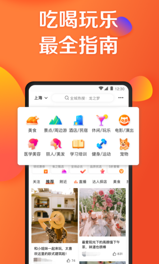 这里聚集了多种本地生活中各种消费的平台,比如丰富的西餐,去哪里游玩,网红推荐种草必备的打卡地,还能在时间充足的时候,订购电影票去电影院观看有趣的影片,海量点评真实又有用。