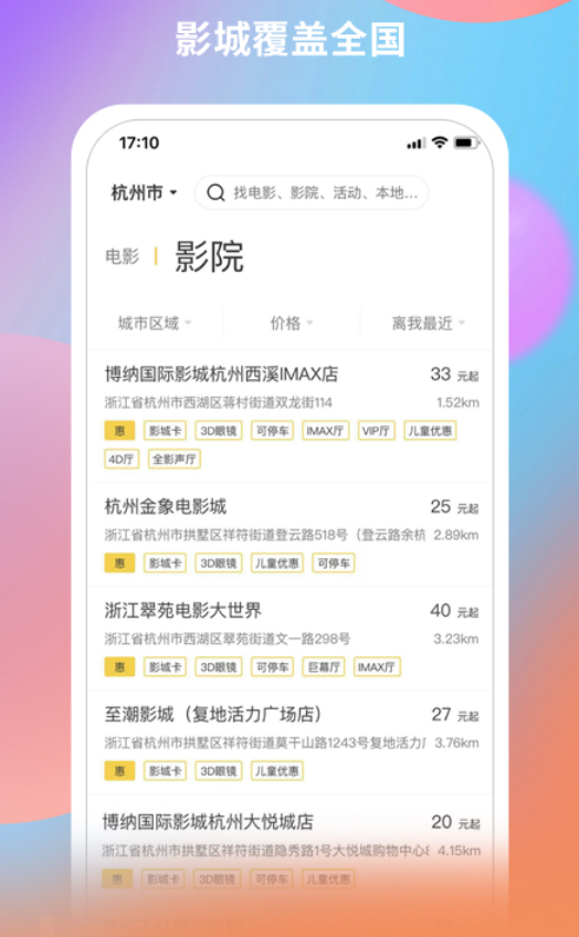 这是一款好玩又有料的购票平台,主打的特色就是超低价格看电影,哪怕是刚刚上映的影片,也能够满足大家,可以享受多种优惠,此款app能够智能筛选,选择指定的影城来进行观看,精彩首页每天推荐的都有所不同。