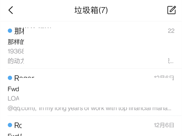 2、进入垃圾箱后即可看到垃圾箱里的邮件。