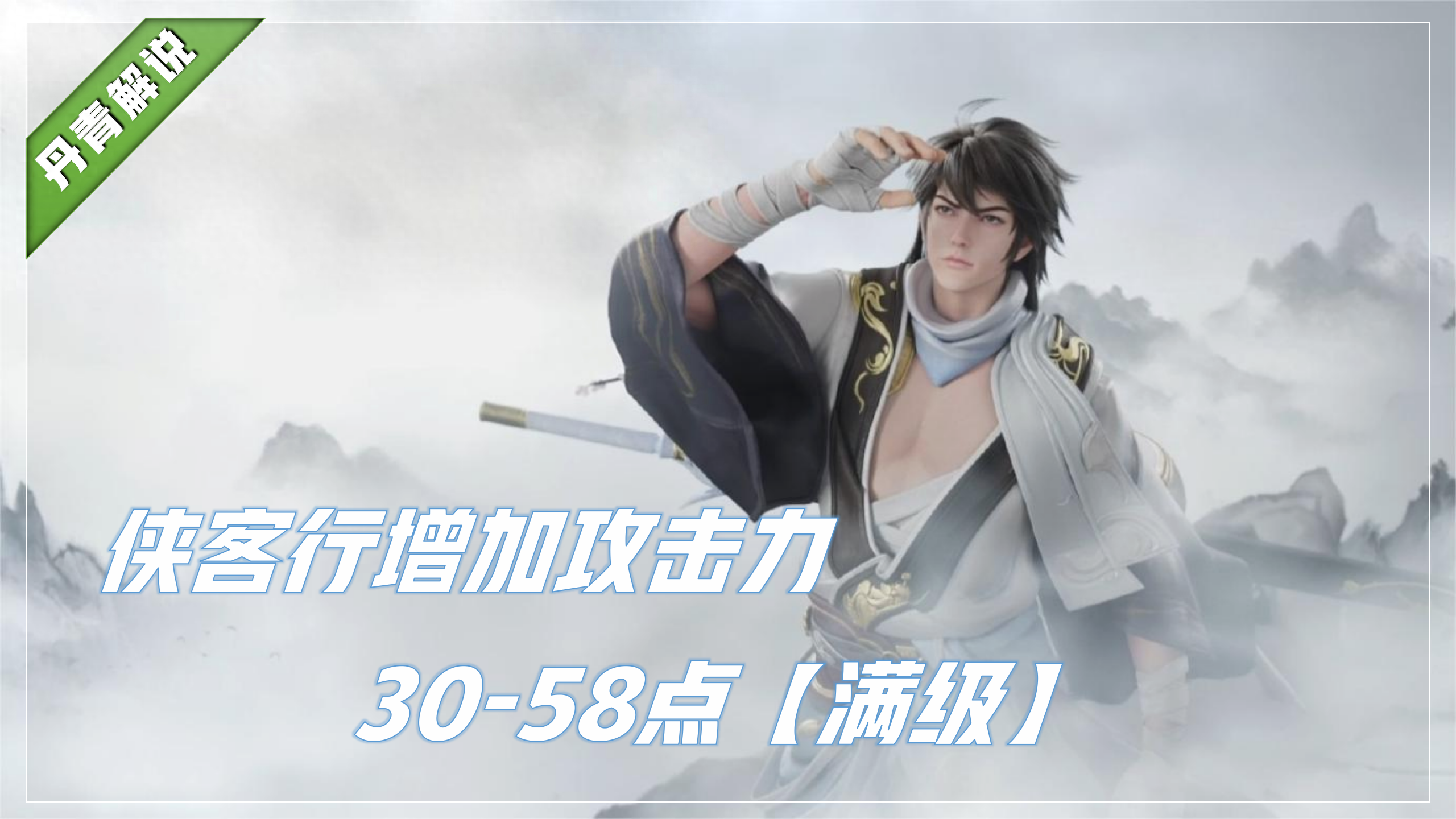 侠客行状态,一级增加30点攻击力,之后每一级增加2点,满级共提升58点。