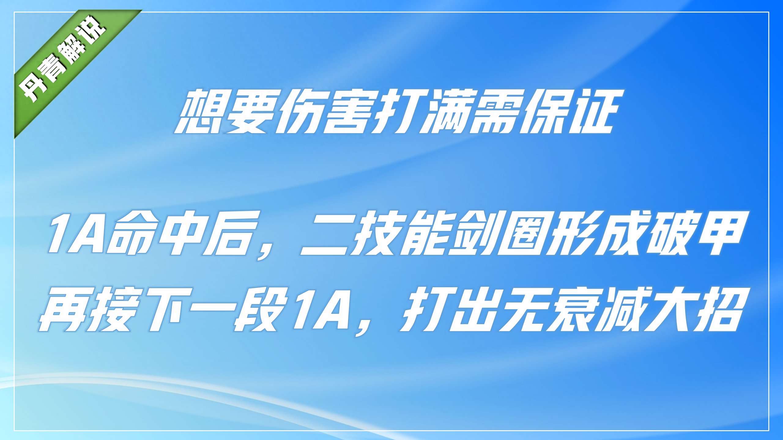 1A起手必须命中,之后用二技能剑圈刮到敌方英雄,造成高额破甲效果,再衔接下一个1A,然后大招定向释放,规避伤害衰减机制。