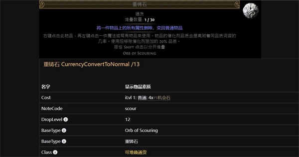 如果玩家的技能宝石正好差个一级就可以正常使用,那么玩家可以将技能宝石和一块重铸石卖给贩卖物品的NPC,他就会给你等级降了1级的技能宝石。