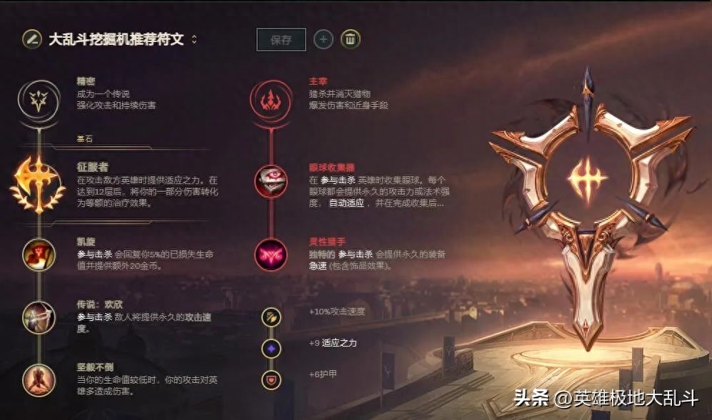 主系符文:征服者+凯旋+欢欣+坚毅不倒