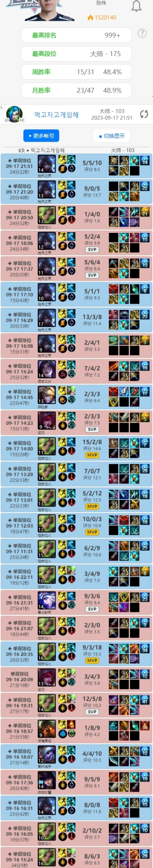 9月18日讯 近期LNG的下路选手GALA在收假后,短短两天就累计进行了31局Rank,其中泽丽更是连续看下MVP!