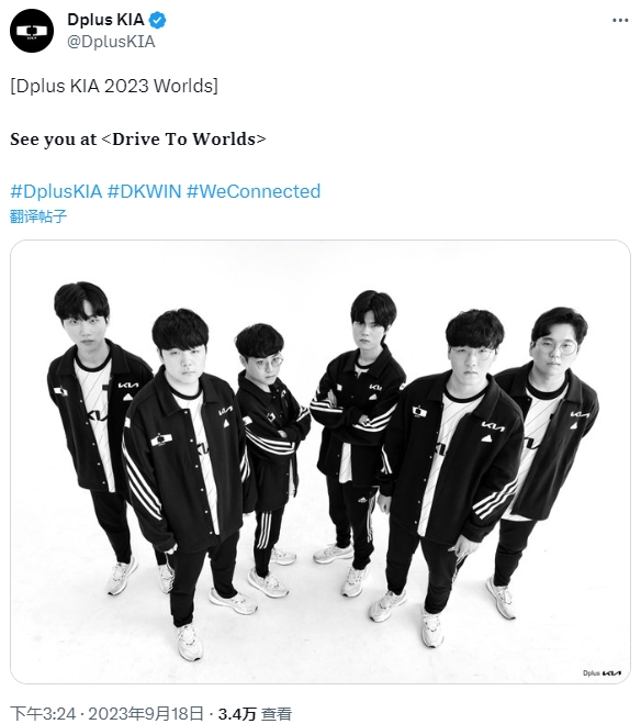 9月18日讯 LCK赛区四号种子DK战队官推,发布了队伍世界赛选手合照,并配文:2023世界赛见!