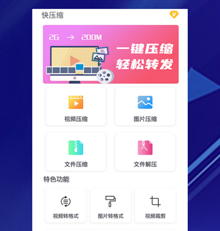支持视频快速压缩、转换格式、视频拼接旋转、图片压缩等等多种功能,尤其是对于一些特殊格式无法播放的问题,也可通过该软件来帮你轻松搞定,支持多种格式的转换,还可将视频中的原声音进行删除,来替换视频背景音乐。使用这款软件进行压缩操作,简单而且节省空间,不用担心占用手机过大的内存。