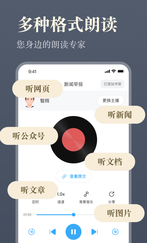 不管是工作内容还是娱乐内容都可以一键收听,多种格式的朗读满足各种需求,可以听公众号、听网页、听新闻、听评书、听相声等等,如果是听网页的话复制链接就可以开启收听了。