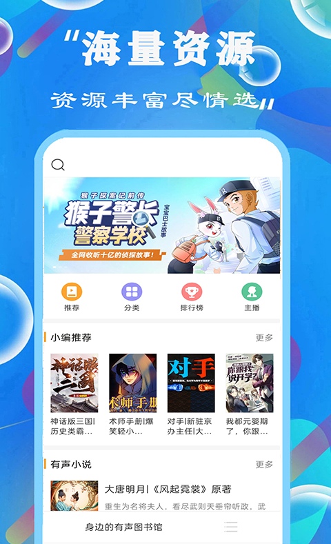 喜欢听书的人不在少数,这个软件足以可以为他们提供丰富的听书内容了,可以选择听新闻、听相声评书、听古典名著、听音乐,只要是你想听的基本都可以在这里找到对应的资源。