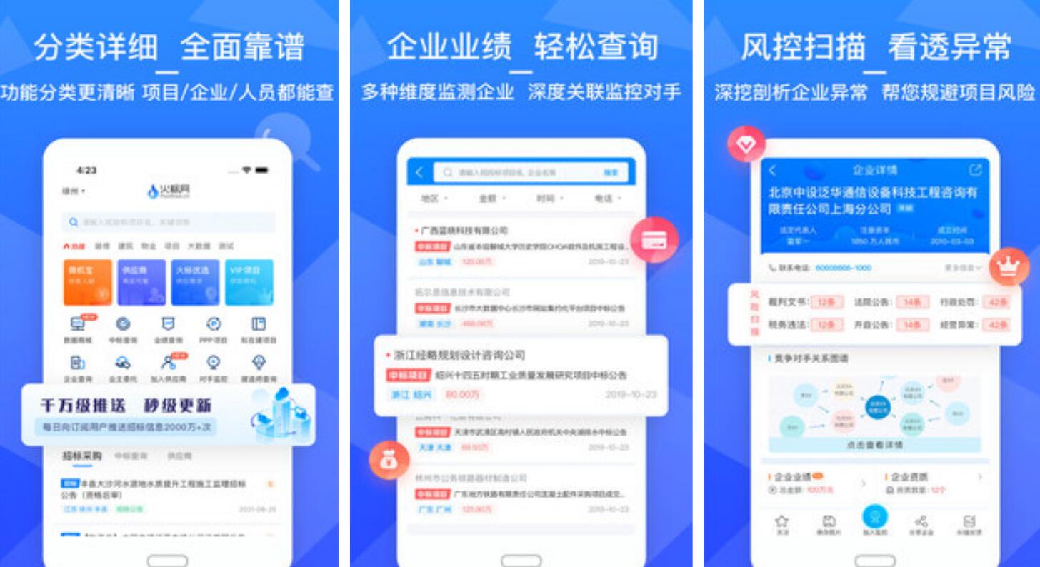 使用这个产品,你可以查到不同行业的发展情况,以及未来的前景,帮你确定,是否要投身进入这个行业。在确定投标之前,大家可以在APP内,找到招标企业的财政状况,以及近期的发展目标,综合考虑之后,再去进行投标,不仅成功的可能性会变高,还可以提前降低风险。