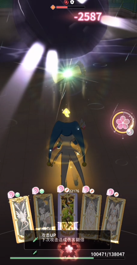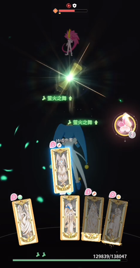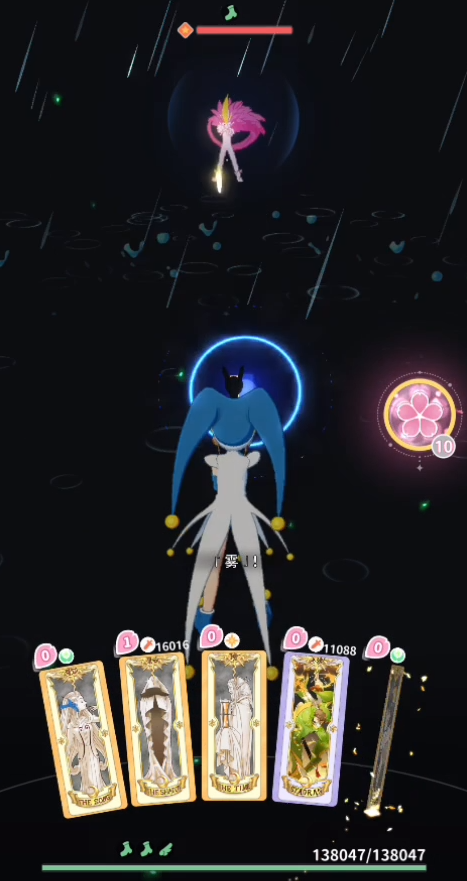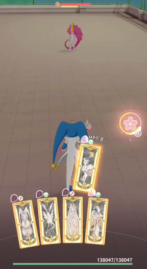 后续的话可以利用翔牌来给自己加一个飞翔buff从而闪避敌人的伤害,注意在它1mp的时候用就可以,毕竟只是一个防御向的技能,期间有雨牌和雾牌的话也都可以使用一下,前者能够持续造成伤害,后者会一定程度上限制对手的行动。