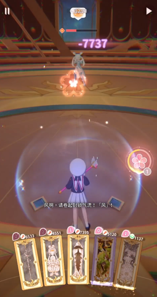 这关比较好的攻击牌有两个,第一个是风牌,既能够对敌人造成一定的限制,还可以直接打出突破七千的伤害,而另一个则是剑牌,这个牌的加成高,而且正好十分克制这关的敌人,成功命中后可以大幅度削减它的血量。