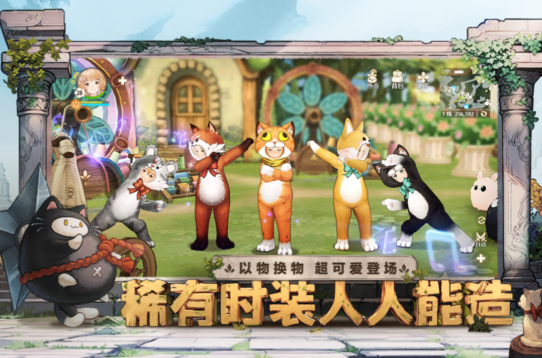 游戏中设计的内容不少,玩家组队参加多人的竞技比赛,去体验不一样的挑战规则,逐渐打开神秘国度的背后故事。猫灵都穿着不同的服饰,女仆猫、忍者猫,这些猫灵可以让玩家感受不一样的宠物系统,猫灵需要养成,因为作为战斗中的重要组成部分,玩家也要依靠他们取胜的。