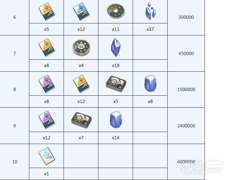 EX技能升级所需材料: