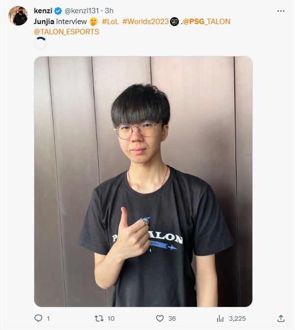 韩媒记者Kenzi发推,分享一张PSG俱乐部打野选手Junjia的近照: