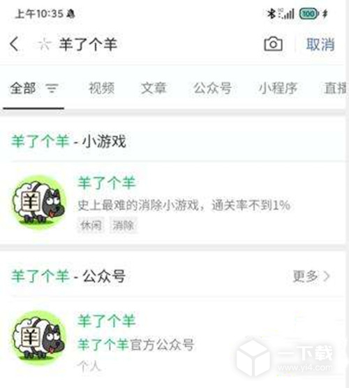 1、打开微信,在最上面的搜索栏中输入“羊了个羊”,会出现小游戏的程序。