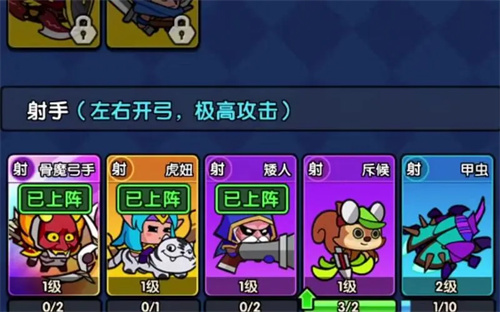 速弓:这是一个非常快速的输出角色,能够对敌人造成连续的箭雨伤害,并且还能够增加自己的攻速。速弓可以作为一个辅助角色,增加爆爆和女王的伤害效果。