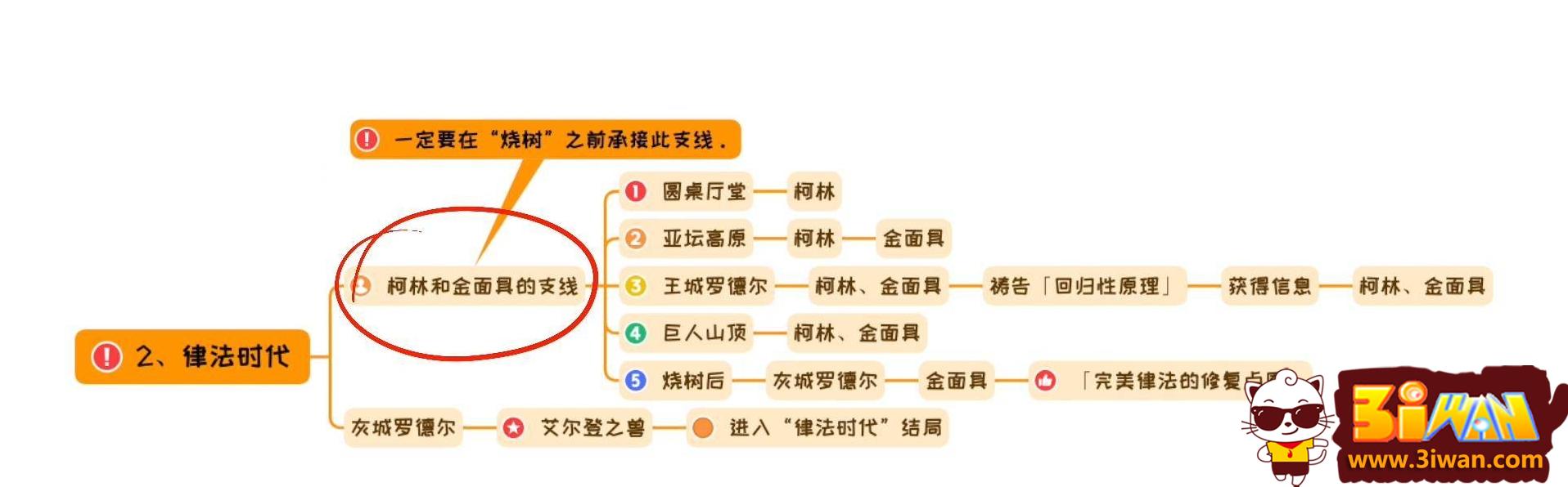 1、完成柯林和金面具的支线,就可以触发律法时代结局。