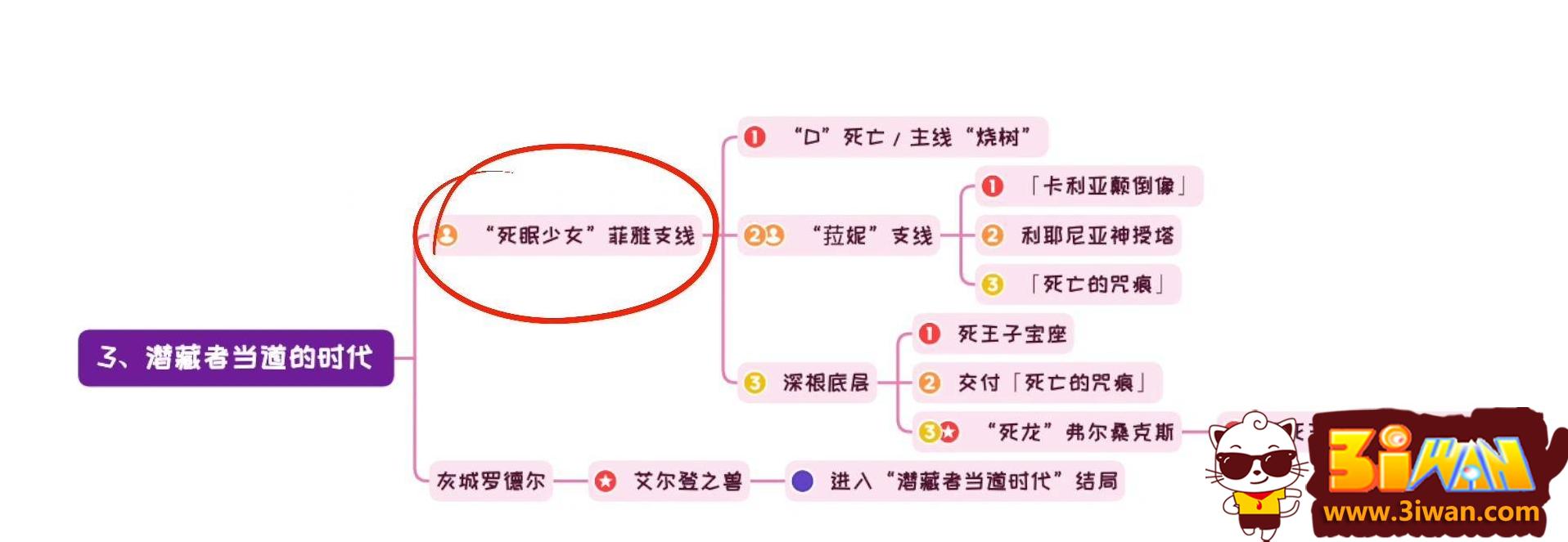1、完成死眠少女菲雅支线,就可以出发潜藏者当道的时代结局。