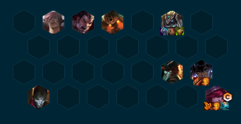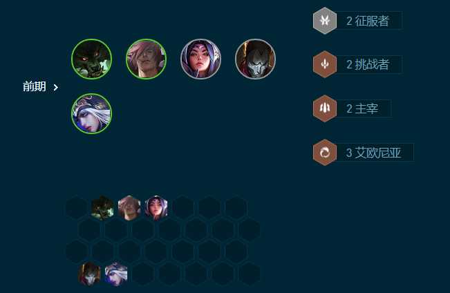 前期过渡以三艾欧尼亚和征服者为主的羁绊,寒冰带输出装备,刀妹带肉装