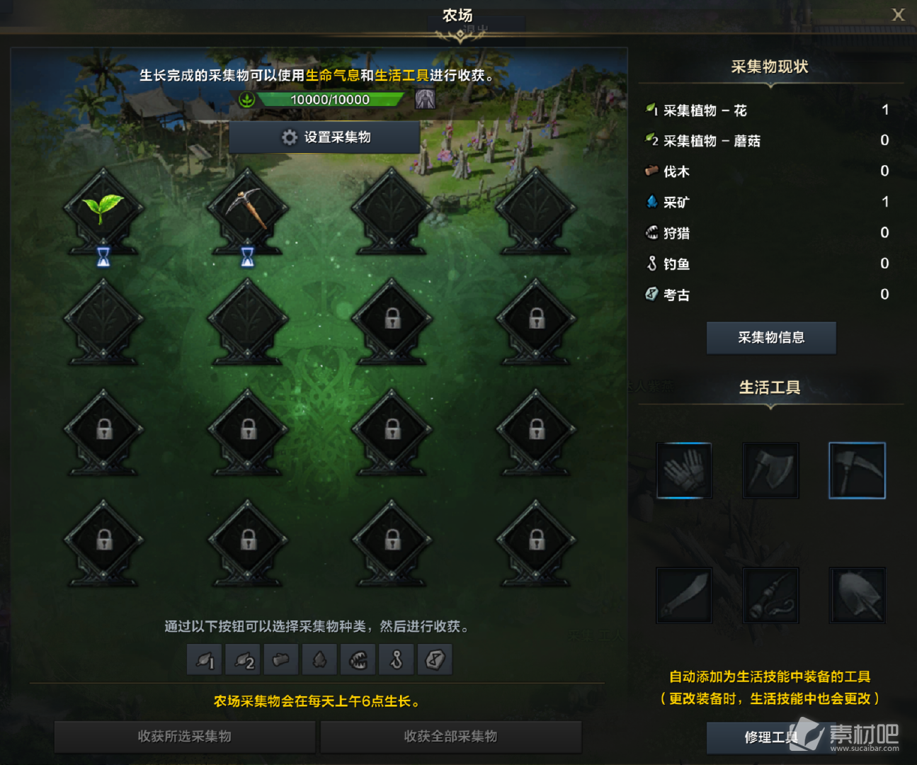 ● 在农场中,冒险家可以在特定的栏位中设置需要的采集物。