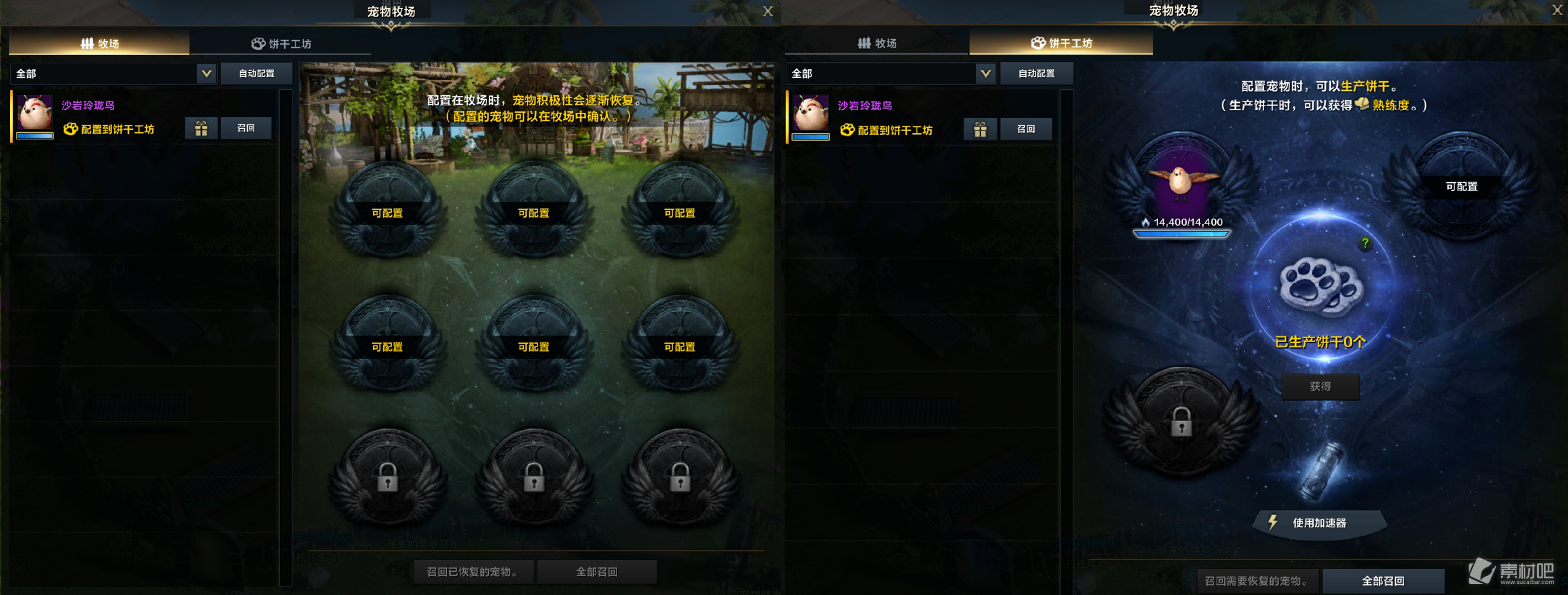 宠物牧场的开启条件为:完成相应的领地研究及完成领地指引任务[嘤嘤!祝贺宠物牧场建成!]
