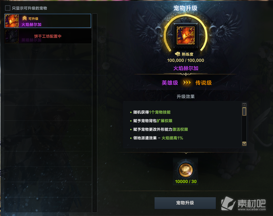 ● 宠物的品质可进一步提升,通过在宠物牧场中获得的宠物熟练度,可以将宠物升级到全新的“传说等级”!达到传说等级的宠物将获得新的宠物技能。