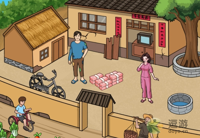 1、文字来找茬强哥暴富,需要花光所有钱,首先把钱拖到院子